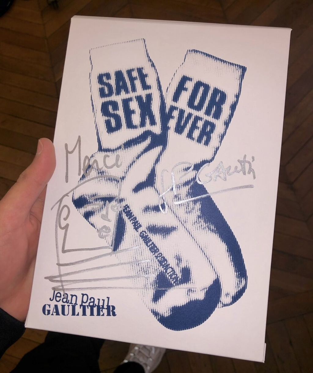 Jean Paul Gaultier s'associe à nouveau à Sidaction pour une nouvelle édition de la chaussette 2022 "Safe Sex Forever".