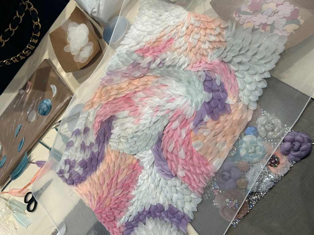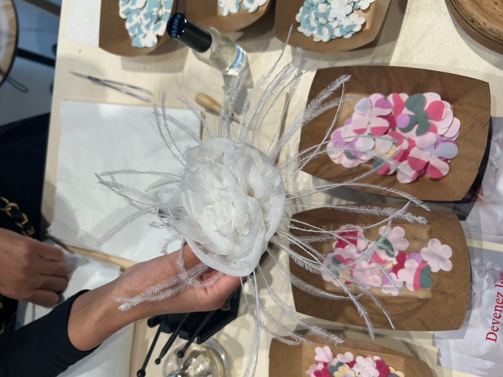Au fil de la journée, j'ai participé à des ateliers d'initiation, où j'ai pu expérimenter moi-même les gestes ancestraux qui donnent vie à ces créations d'exception notamment dans le domaine de la plumasserie, de la broderie et de l'orfèvrerie. Guidée par des artisans passionnés, j'ai découvert la minutie et la précision nécessaires pour maîtriser ces métiers d'art, tout en laissant libre cours à ma créativité.