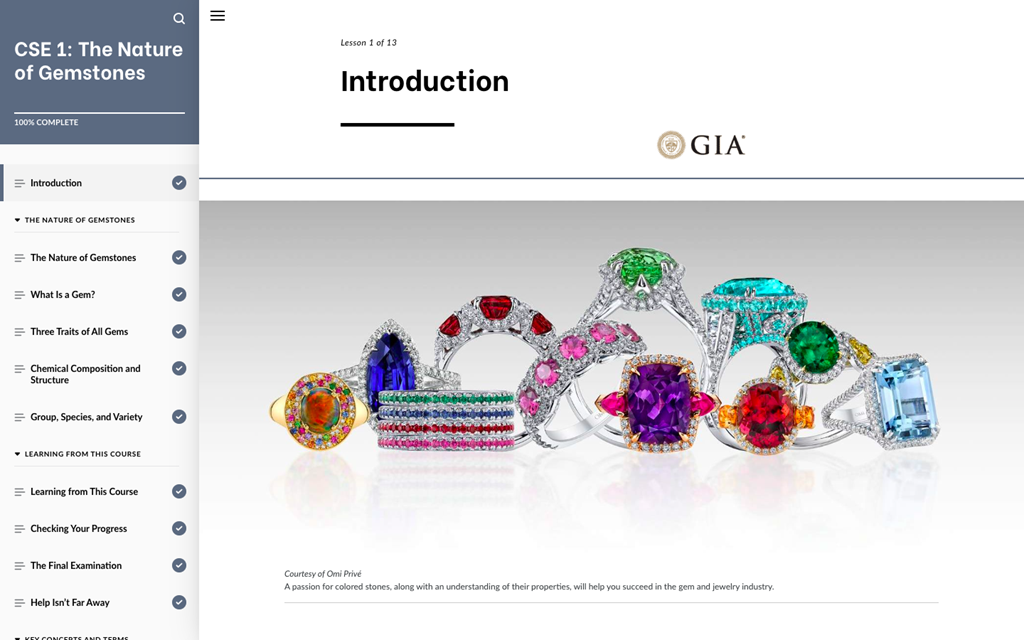 J’ai suivi le cours gratuit d’introduction du programme Colored Stone Essentials proposé par le GIA (Gemological Institute of America), plus précisément le module CSE 1 : The Nature of Gemstones. Ce premier module pose les bases essentielles pour comprendre ce qu’est une gemme et comment elle est étudiée par les gemmologues.